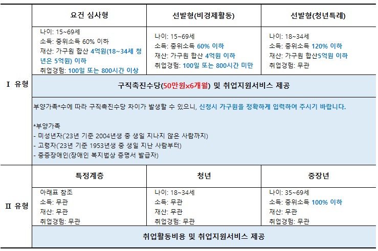 국민취업지원제도는 저소득층, 경력단절여성, 특수형태근로종사자 등 취업취약계층으로 인정되는 분들은 누구나 취업지원서비스를 받을 수 있도록 하고, 저소득층에게는 구직활동을 전제로 소득지원을 강화하여 기존의 고용안전망 사각지대를 없애고 취업성공패키지의 한계를 보완하는 제도입니다.